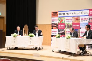 ‘Making Nanyo a global brand’ On 14 May, at the Nanyo City Shelter Nanyo Hall in Yamagata Prefecture, our President Kiyoyuki Okuyama (President of Shiki Nanyo Co., Ltd.) explained the business plan of Shiki Nanyo, and facilitated a talk session with the participation of Nanyo local residents.