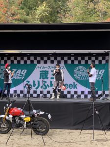 On Saturday, October 9th, our CEO, Okuyama, gave a talk show at “Bikers Paradise Zao Furifuri Week”, one of the largest motorcycle events in Tohoku region and talked about episodes related to himself and motorcycles, motorcycle design, and motorcycles of the future. (The event was held from Saturday, October 9 to Sunday, October 10 at Zao Sogo Ground)