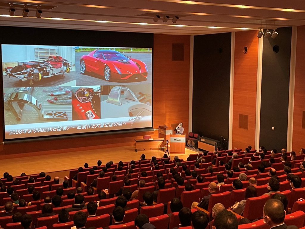 CEO Kiyoyuki Okuyama had a special lecture on the theme of “Next Generation Manufacturing and Design” – Toward the era of high-mix low-volume production – at the “JIMTOF2022 Encore Fair” being held at the Minokamo Works/World Technology Center of Yamazaki Mazak Corporation on 12/8. At the fair, many state-of-the-art machine tools and laser cutting machines were exhibited, and next-generation CNC equipment, hands-on operation of the latest software, and a new smart factory utilizing IoT technology were introduced.