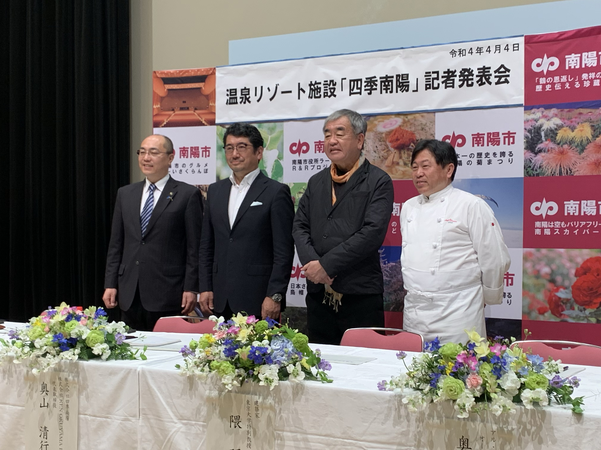 4月4日、KEN OKUYAMA DESIGNがトータルプロデュース・デザインを手がける温泉リゾート施設「四季南陽」の記者発表会が山形県南陽市で開催されました。KEN OKUYAMA DESIGNは日本を代表する建築家 隈研吾氏、イタリアンレストラン「アル・ケッチャーノ」オーナーシェフの奥田政行氏とタッグを組み、2023年9月の開業を目指して開発に取り組んでいきます。