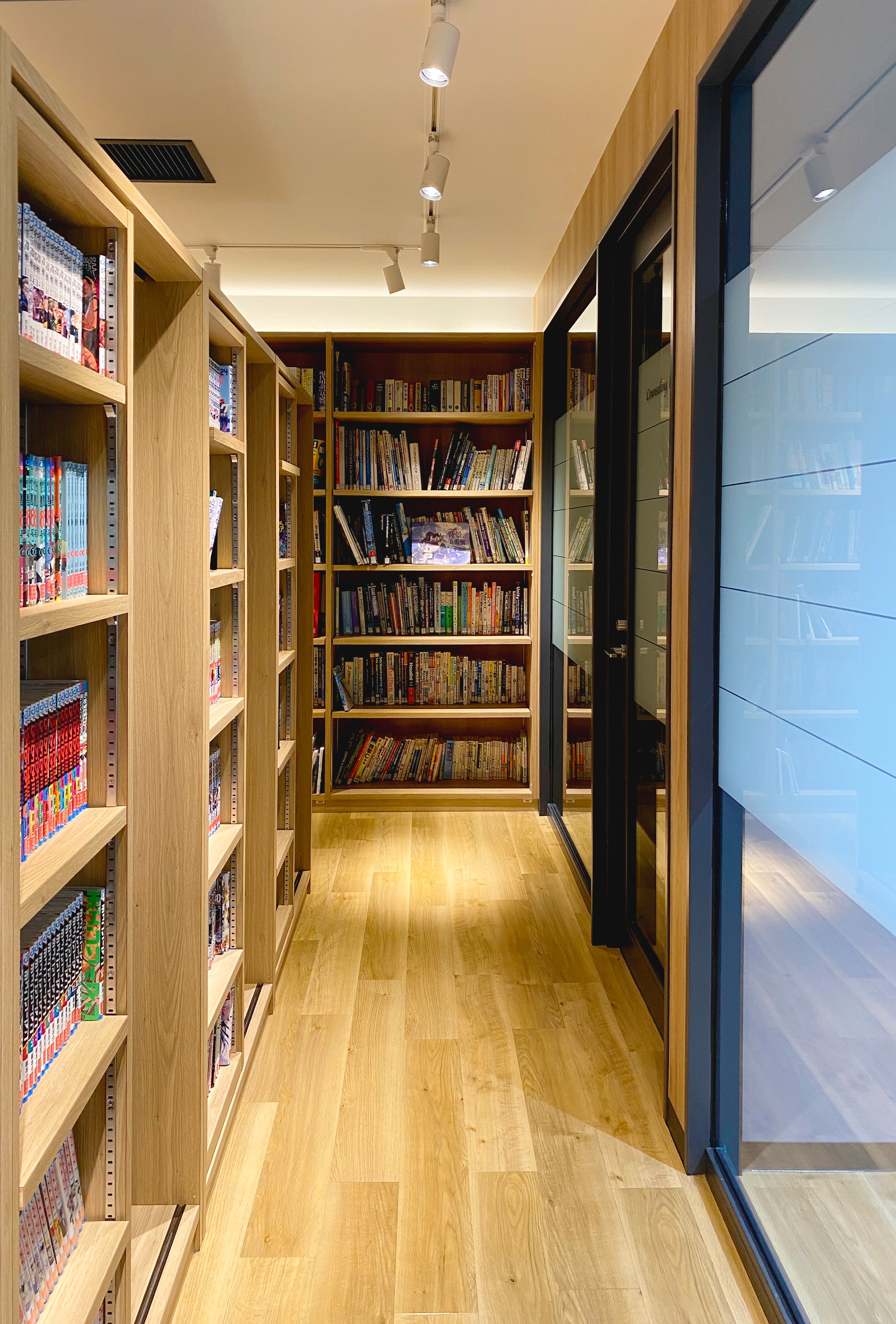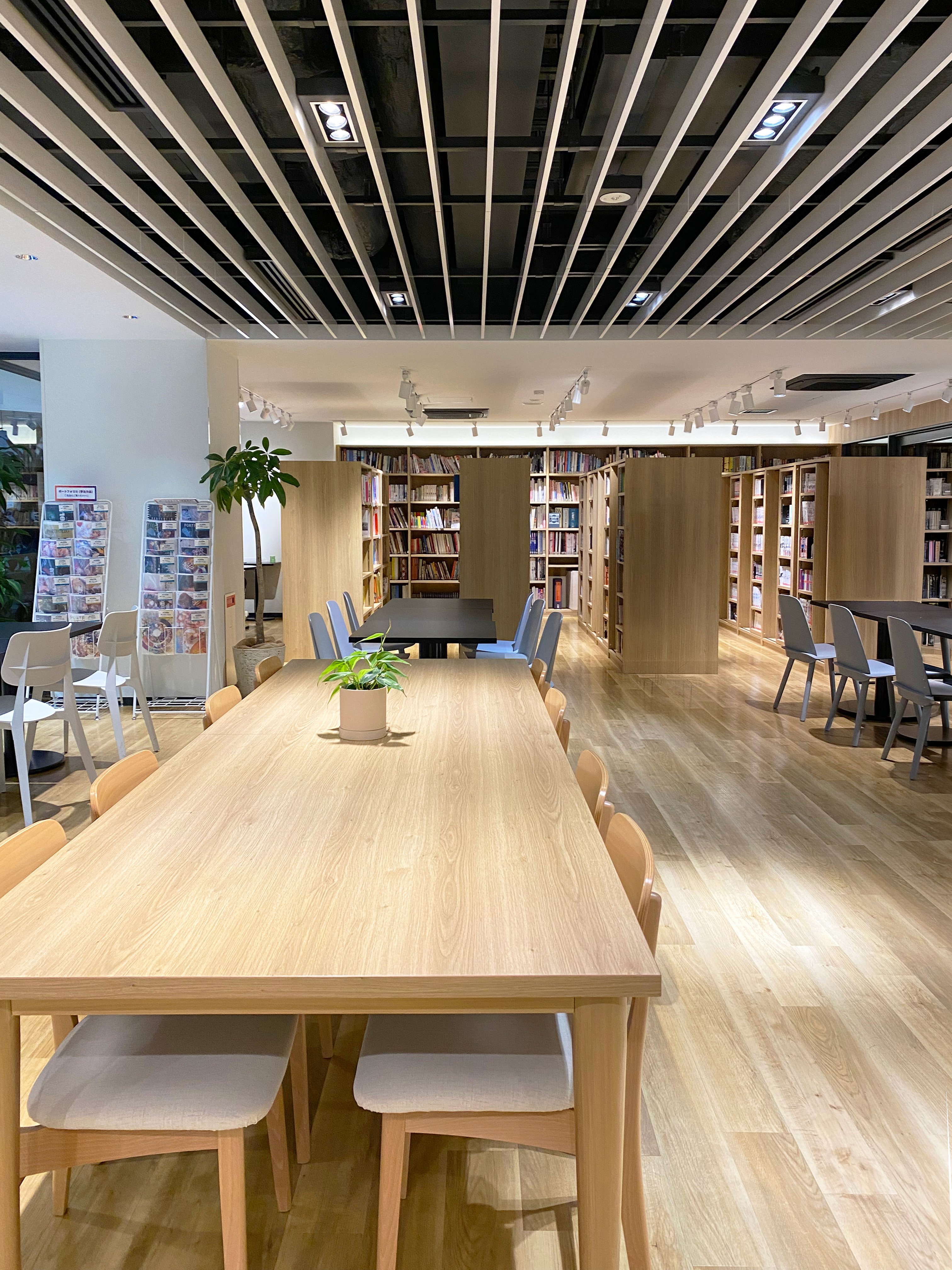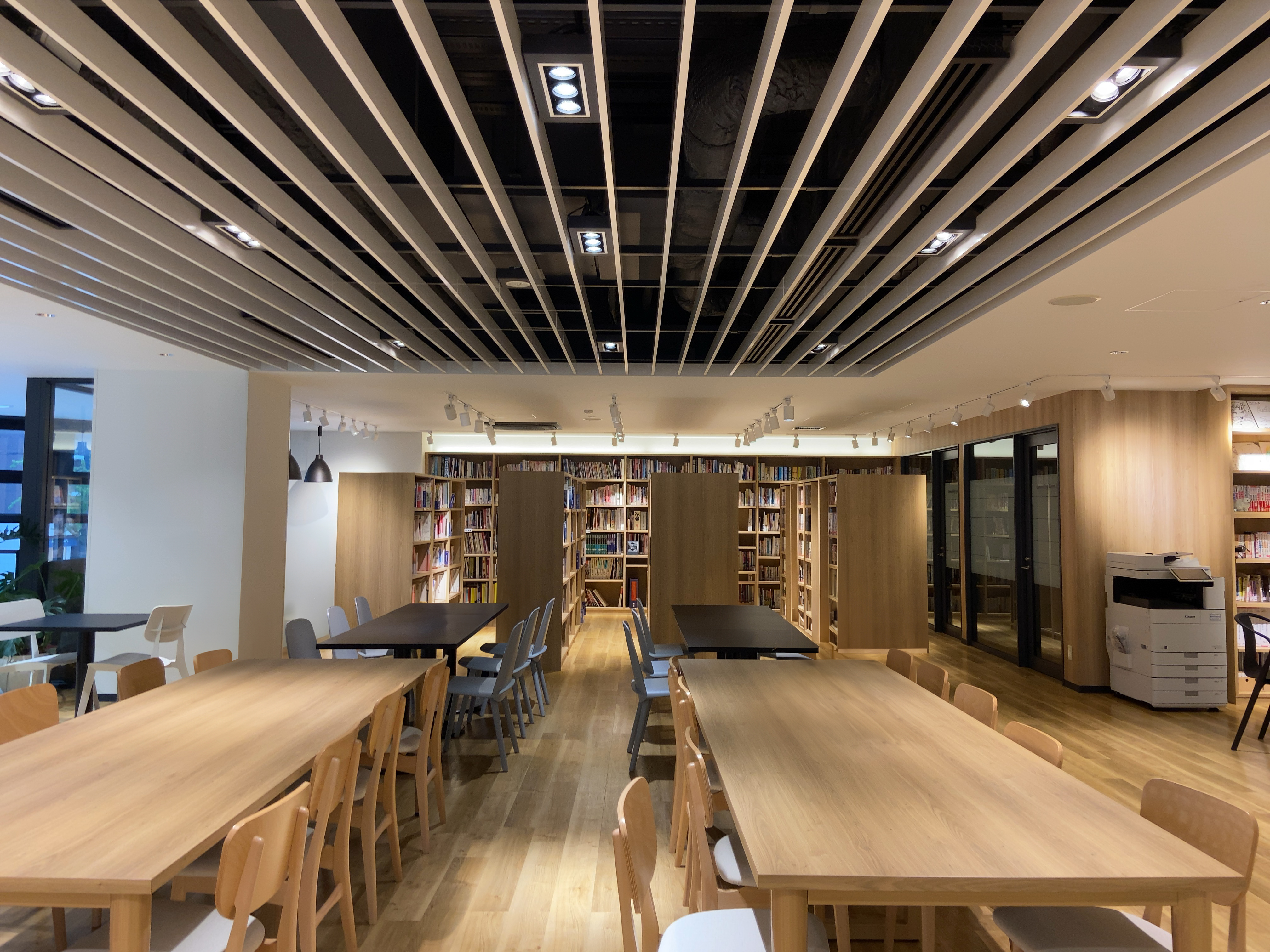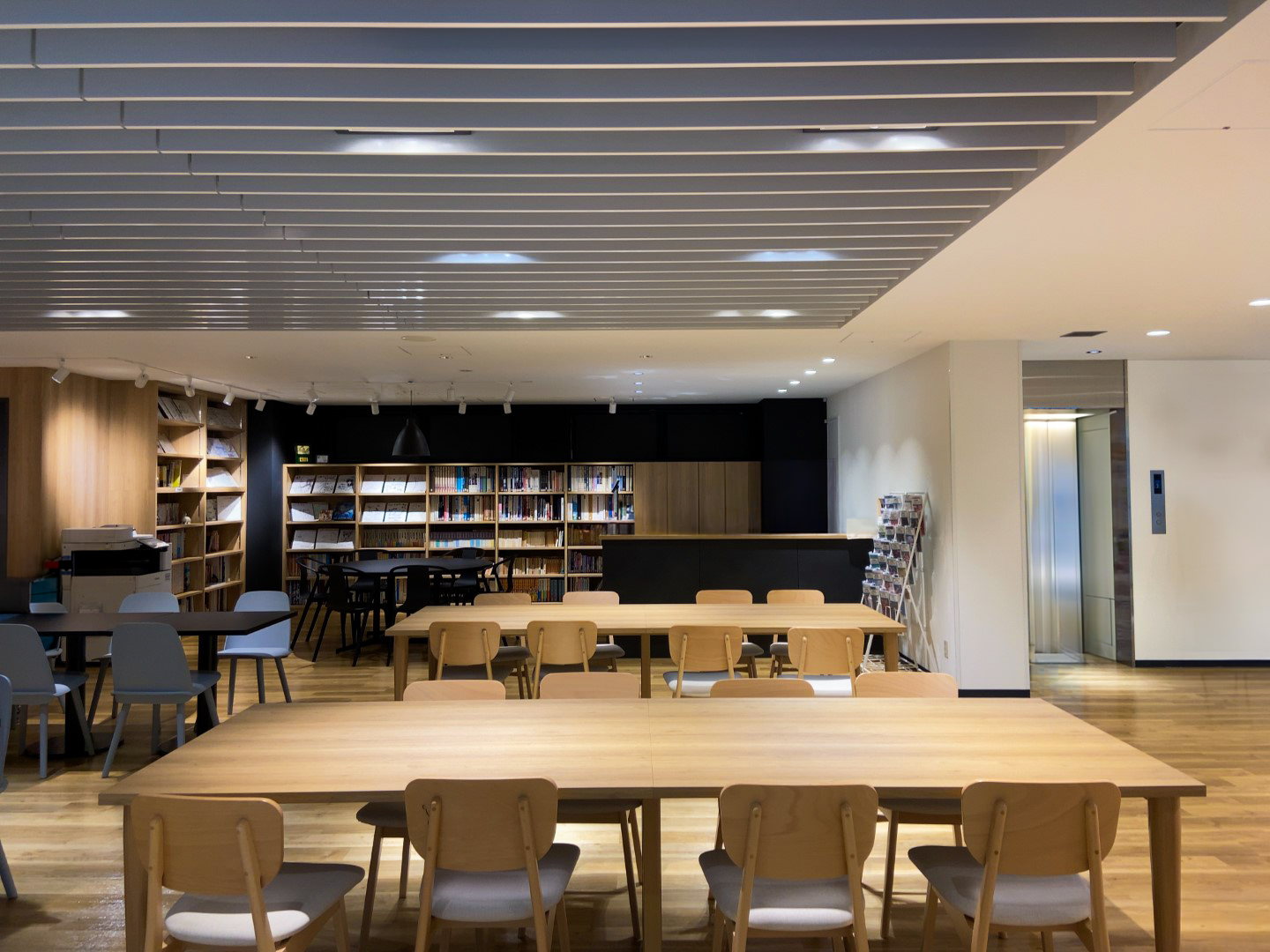 さらに、学生や教職員が自然と集まり、談笑や交流が生まれるスペースを増設することで、コミュニケーションの活性化を目指しました。2階では壁を取り払い、機能性と快適さを兼ね備えた図書ラウンジへと一新。新たな空間が、学びと交流をより豊かにする環境を提供します。