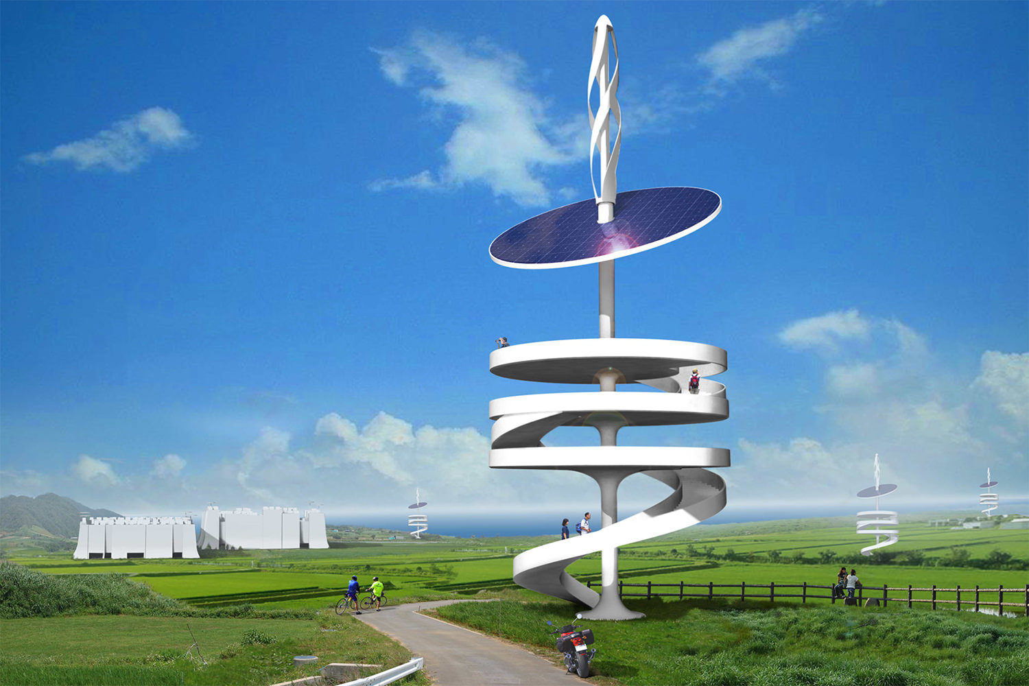 それぞれのシティ間はオンデマンド型の自動操縦バスで結ばれ、地方都市における第3の交通機関のモデルケースとなります。またバスが入れない場所は小型の一人乗りpod carが移動手段となり、クリーンで安全な移動を提供する小型モビリティロボットの実験都市でもあります。人、情報、文化の流れをコンパクトにまとめ、屋根のソーラーセルや螺旋風車によって集められる再生可能エネルギーを効率よく循環させる”SMART COMPACT CITY”は、被災地の復興をバネに世界をリードする新世代スマートシティのひとつの姿です。